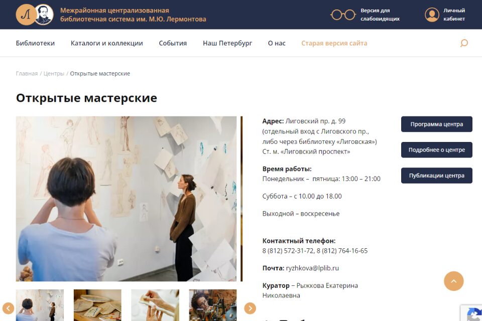 Творческое пространство «Лиговской» библиотеки ориентировано на искусство, поэтому каждый может получить здесь знания, делиться ими, обучаться и обучать. В «Открытых мастерских» регулярно проводятся наборы на бесплатные курсы по керамике, шелкографии, компьютерной анимации, каллиграфии и другим видам творчества, также там проходят разовые мастер-классы, в том числе с партнёрами. Например, «Керамика на английском», где во время занятия участники смогут и смастерить тарелку, и попрактиковать язык. Важно: возрастную категорию каждого мероприятия нужно отдельно уточнять в библиотеке.