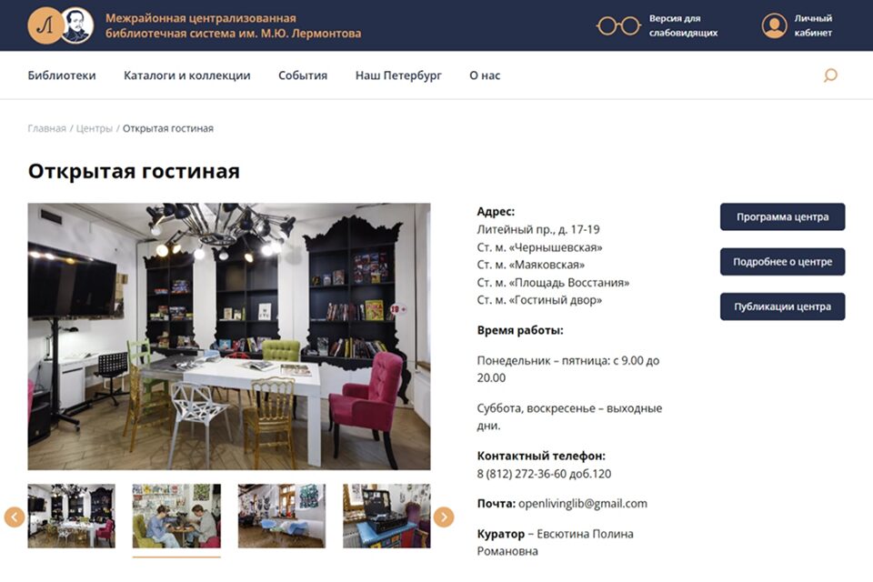 «Открытая гостиная» — это творческое пространство Центральной библиотеки Лермонтова. Здесь проходят бесплатные лекции, мастер-классы и выставки. Так, можно посетить мастер-класс по вязанию пледов, созданию коллажей, работе на удаленке, изучению новых языков.