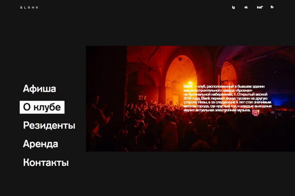 Blank – современное клубное пространство, расположенное в одном из бывших зданий машиностроительного завода «Арсенал» на Арсенальной набережной. Открытый в 2018 году клуб стал значимым местом для любителей электронной музыки, особенно техно и электро. Сюда приходят ради мощной акустики, профессиональных диджеев и полного погружения в праздничную атмосферу на двух больших танцплощадках общей площадью около 700 квадратных метров.