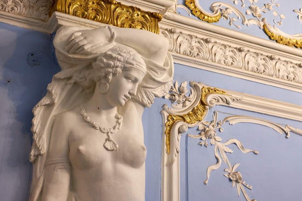 Забудьте про серые подъезды – парадная особняка Каншина встречает небесно-голубыми стенами с белой лепниной, кариатидами и купидонами, будто перенося из питерского переулка в малый Эрмитаж. Построил его в 1860-м архитектор Густав Барч для откупщика Василия Каншина. Сборщик питейных налогов подарил дом дочерям. После революции здесь располагались коммуналки, а сейчас – школа джаза, фотостудия и кафе, чудом сохранившие интерьеры эклектики.