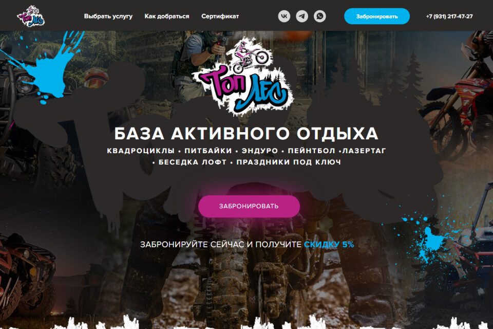 Кроме того, «Топ Лес» предлагает туры на квадроциклах с живописными маршрутами по красивому лесу и аренду питбайков или мотоциклов эндуро.