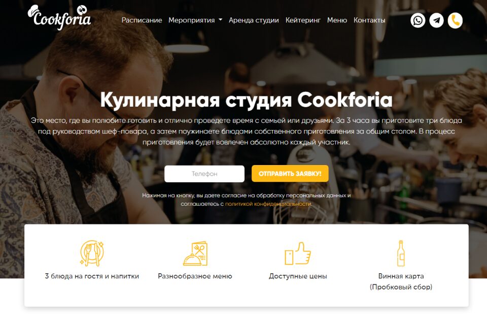 Кулинарная студия проводит мастер-классы для взрослых и детей. Длится готовка 3 часа: за это время под руководством шеф-повара вы сможете приготовить три блюда. Есть несколько меню на выбор. После приготовления состоится ужин, где каждый участник попробует собственные творения.