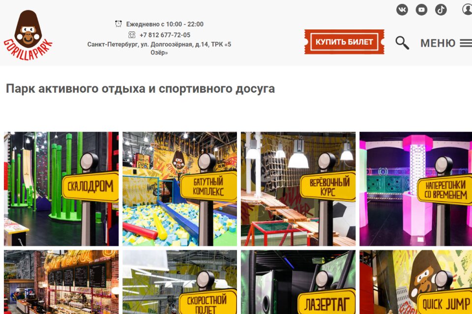 Парк рассчитан на детей от 7 лет и взрослых. Включает в себя спортивные зоны и площадки с аттракционами и развлечениями: скалодром, горки, батуты, игровые автоматы, лазертаг и др. Можно приобрести билет в отдельную зону или общий билет на все развлечения.