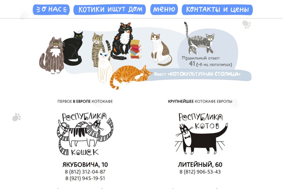 Место, где живут несколько десятков кошек и котов самых разных пород. С ними можно играть, их можно гладить и фотографировать. Здесь можно не только пройти сеанс «кототерапии», но и приютить хвостатого домой. После общения с котиками не забудьте взять десерт и выпить чашечку чая или кофе.
