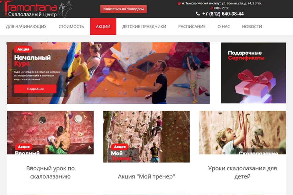 Скалолазный центр «Трамонтана» в Санкт-Петербурге включает в себя просторный зал с высокими стенами для лазания, боулдеринговую зону и тренажерную комнату. Если прийти сюда впервые, можно попробовать вводную тренировку для оценки своих навыков. А для спортсменов здесь проходят групповые и индивидуальные занятия с профессиональными тренерами.