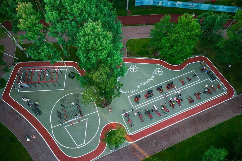 Эта спортивная зона посвящена единоборствам и силовым тренировкам. Здесь можно найти турники, брусья, столы для армрестлинга и пинг-понга, а также современные тренажеры с регулируемой нагрузкой, подходящие для спортсменов любого уровня физической подготовки. Особенно популярна площадка среди подростков и взрослых, среди которых есть и опытные атлеты, и начинающие.