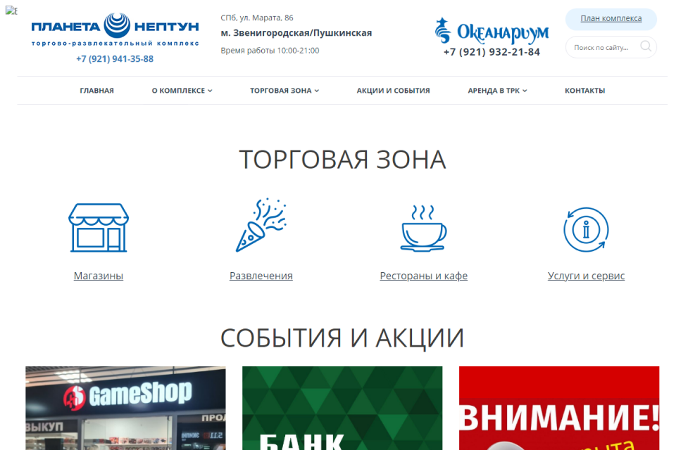 «Планета Нептун» с первым в России океанариумом открылся для посетителей в 2006 году. В состав ТРЦ входят детский развлекательный комплекс «Джангл Лэнд», 7D-кинотеатр, магазины крупных торговых операторов, супермаркет «Перекресток», кафе и рестораны. Гостям доступны салон красоты, центр китайского массажа, ателье, фотобудки. Главной достопримечательностью, конечно, является именно океанариум, где проводятся образовательные мероприятия для детей. Его посещение — приятный бонус к семейному шоппингу.