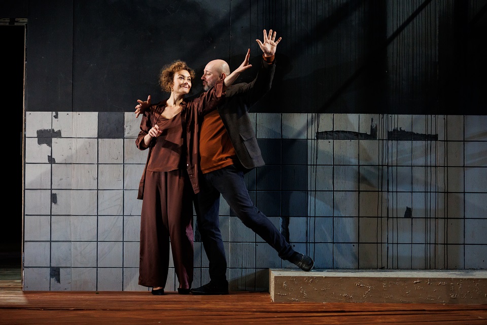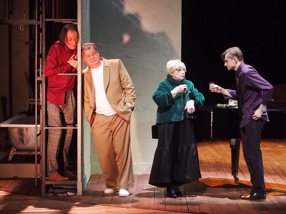 В двух этих пространствах за пустыми разговорами, посиделками, игрой в карты и зажигательными танцами в стиле рок-н-ролл рушатся человеческие судьбы, как, собственно, и принято у Чехова. Никто никому не нужен в этом ненастоящем мире. Режиссер на контрасте с декорацией делает персонажей гротескными, почти цирковыми. Все они – маски, пародии на самих себя. А то, что душа все-таки живая и ищет за что зацепиться, подчеркивает проникновенная музыка Виталия Истомина.