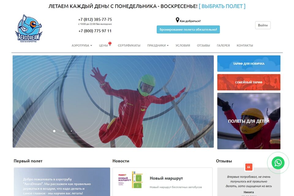 | AeroDream | 3 минуты – от 2 990 рублей, 5 минут – от 4 490 рублей, 10 минут (на двоих) – от 7 490 рублей, 15 минут (семейный тариф) – от 9 990 рублей, 20 минут – 12 990 рублей, 60 минут (групповой тариф) – 36 000 рублей. |
