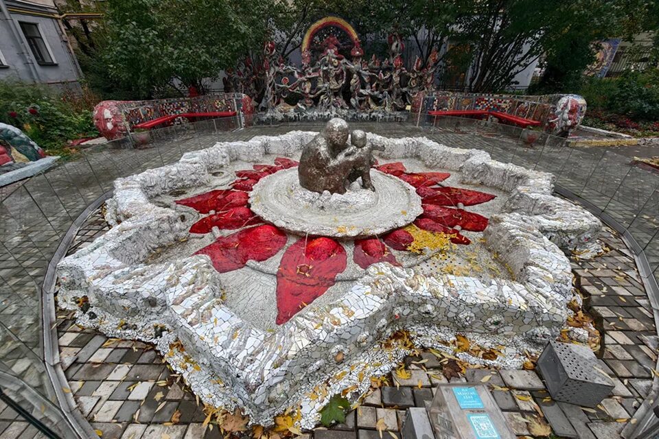 Каждый элемент здесь продуман: цвета, фактуры и формы создают ощущение целостного художественного замысла. Чтобы попасть во двор, дойдите до пересечения улицы Чайковского с набережной Фонтанки, найдите дом № 2/7 и войдите в двор справа. По ходу движения к Фонтанке справа заметите мозаичный детский городок, а затем откроются остальные арт‑объекты.