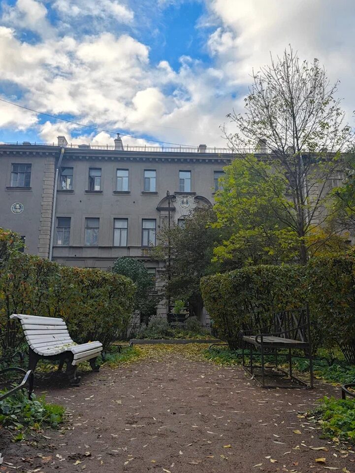 Это место называют «двором-котиком» из-за необычной формы, напоминающей кошачью голову. Треугольное здание на улице Рубинштейна когда-то было доходным домом. В нем всего шесть квартир, рассчитанных на состоятельных горожан. Первый этаж традиционно занимали магазины. До сих пор внутреннее пространство хранит дух города XIX века.