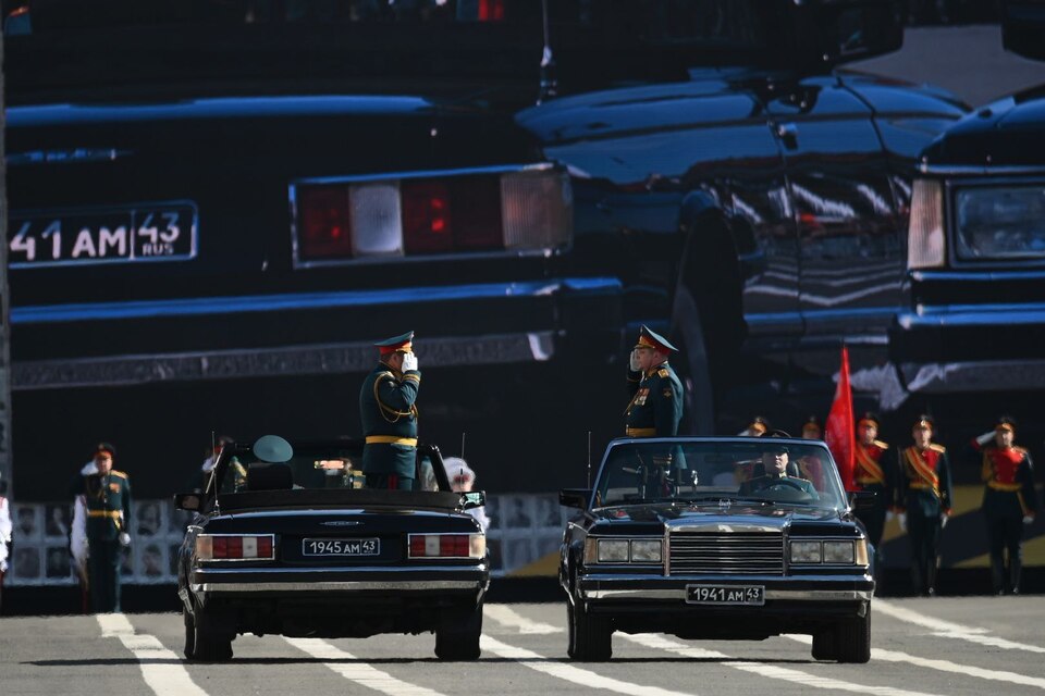 В начале Парада по Дворцовой площади прошла автоколонна с ветеранами-победителями и знаменем Победы. За ними следовал расчет участников СВО. Сводный военный оркестр Санкт-Петербургского территориального гарнизона играл «День Победы».