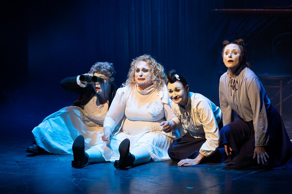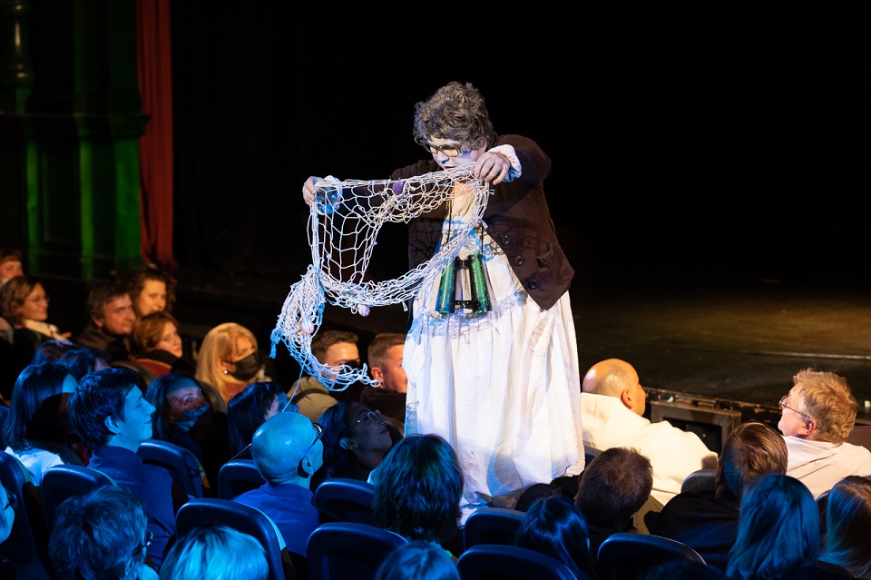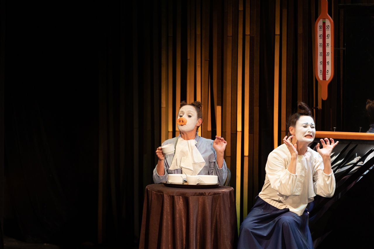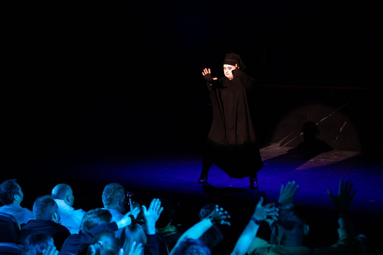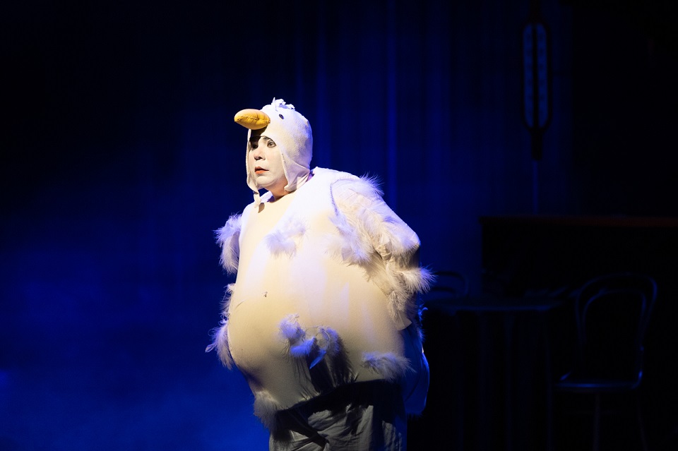 Надо сказать, что смешного в постановке действительно много, но примерно с середины «AMOREnaMORE» начинаешь не просто пускать слезу, а реветь беспрерывно. Прям вот как будто у тебя перед глазами постоянно режут лук. Появляется, например, на сцене Чайка (один из персонажей в исполнении Натальи Парашкиной — прим. редакции) и орет, орет, еще раз орет нечеловечьим голосом, зовет кого-то, потряхивает своими очаровательными перышками, как настоящая птица, а потом пытается взлететь… Но не может — одно крыло у нее бракованное…