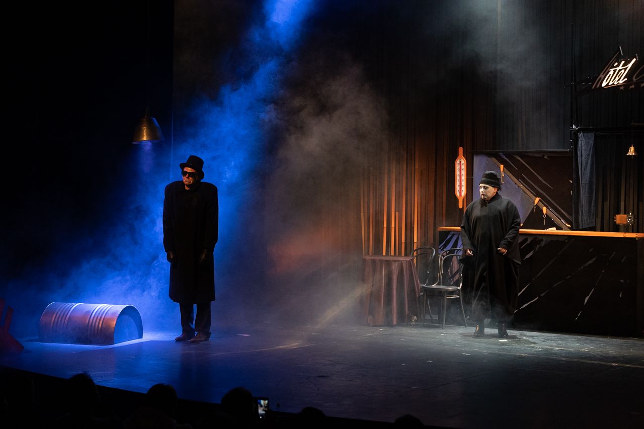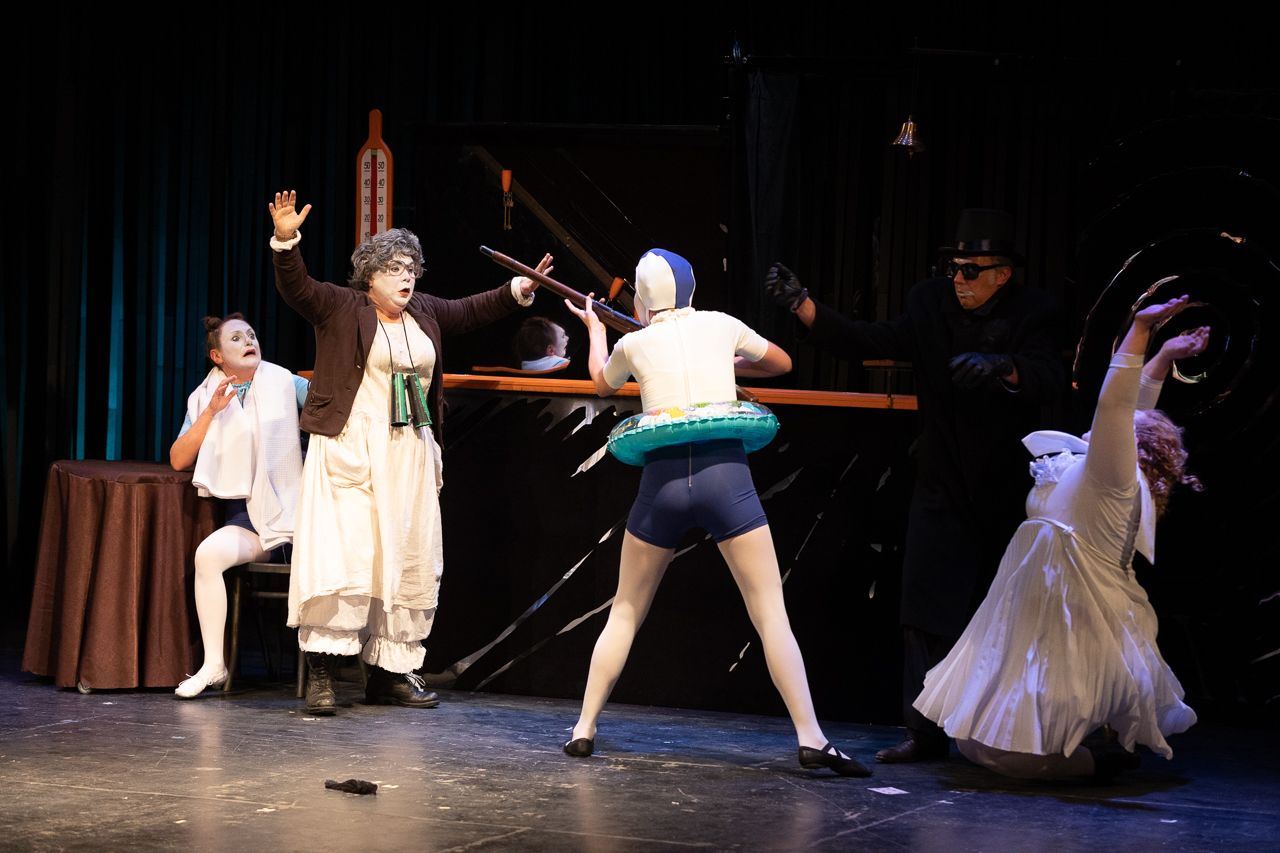 Зато есть прекрасная музыка, песни, свет, шумовое оформление, а также пять универсальных, эксцентричных артистов, которые умудряются за два часа сыграть15 персонажей, с легкостью меняя характеры, внешность и пол. Авторами сюжета тоже являются они: Ольга Елисеева, Александр Гусаров, Юлия Сергеева, Марина Махаева и Наталья Парашкина. Драматурга нет. Придуманные актерами номера и этюды (каждый из которых представляет собой короткую историю — прим. редакции) были показаны режиссеру, который из этих набросков сложил целое.