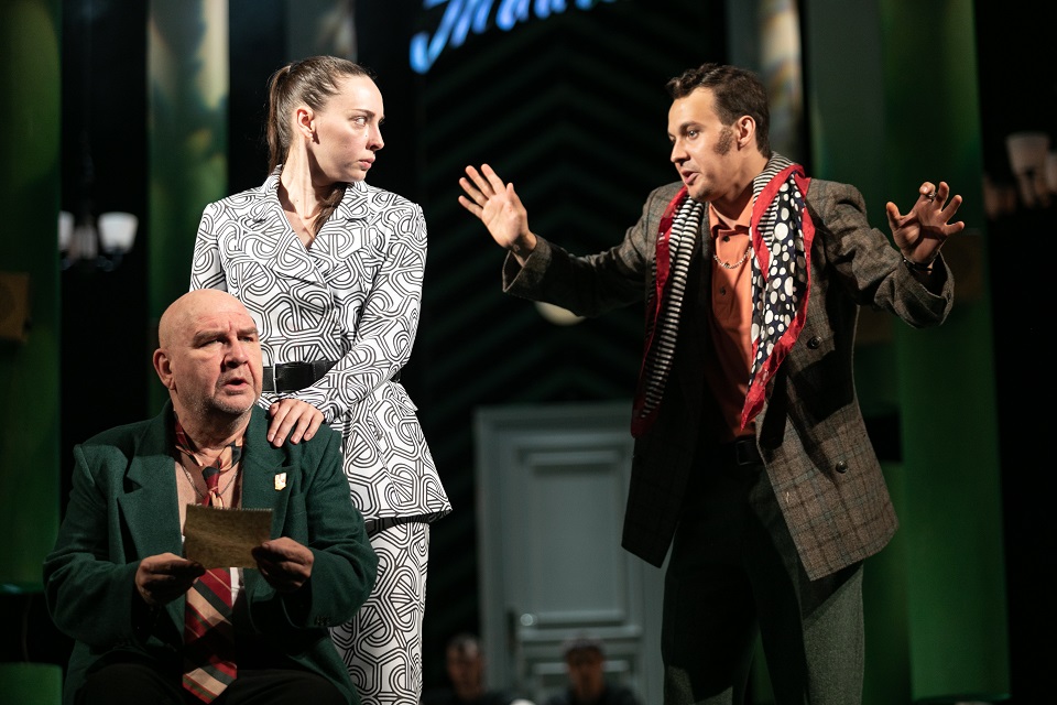 — Пьеса, хоть и привязана к тому времени, когда в гостиницах были определенные запреты, но человеческие взаимоотношения и страсти остались прежними. Театру нужна была комедия очень хорошего качества и наш художественный руководитель Виктор Абрамович Новиков принял решение взять именно эту дилогию Вампилова к постановке. Мы все благодарны ему. Для любого артиста Вампилов — подарок. По драматургии это уровень Шекспира, Островского, Гоголя и Чехова. Текст пьесы не просто говоришь, а ты буквально дышишь этим тестом. Мы все с удовольствием погрузились в материал. Автор был тридцатилетним человеком и так невероятно тонко чувствовал! Все его герои узнаваемы для каждого, — признается заслуженная артистка России Елена Симонова, исполняющая роль официантки Марины, которая крутит роман с молодым любовником на глазах у престарелого мужа.