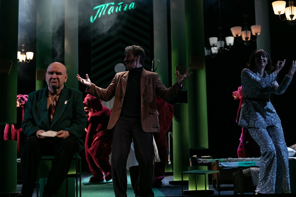 Действие пьесы разворачивается в гостинице «Тайга» под Иркутском рядом с озером Байкал в советское время. Именно поэтому у художника-постановщика Анвара Гумарова в альянсе с режиссером родилось такое сценографическое решение. Зрителям должно быть сразу ясно — это и есть наша Россия, все мы живем в тайге и по волчьим законам… Но сюжет все-таки вневременной, актуальный и острый, а жанр все-таки комедийный.