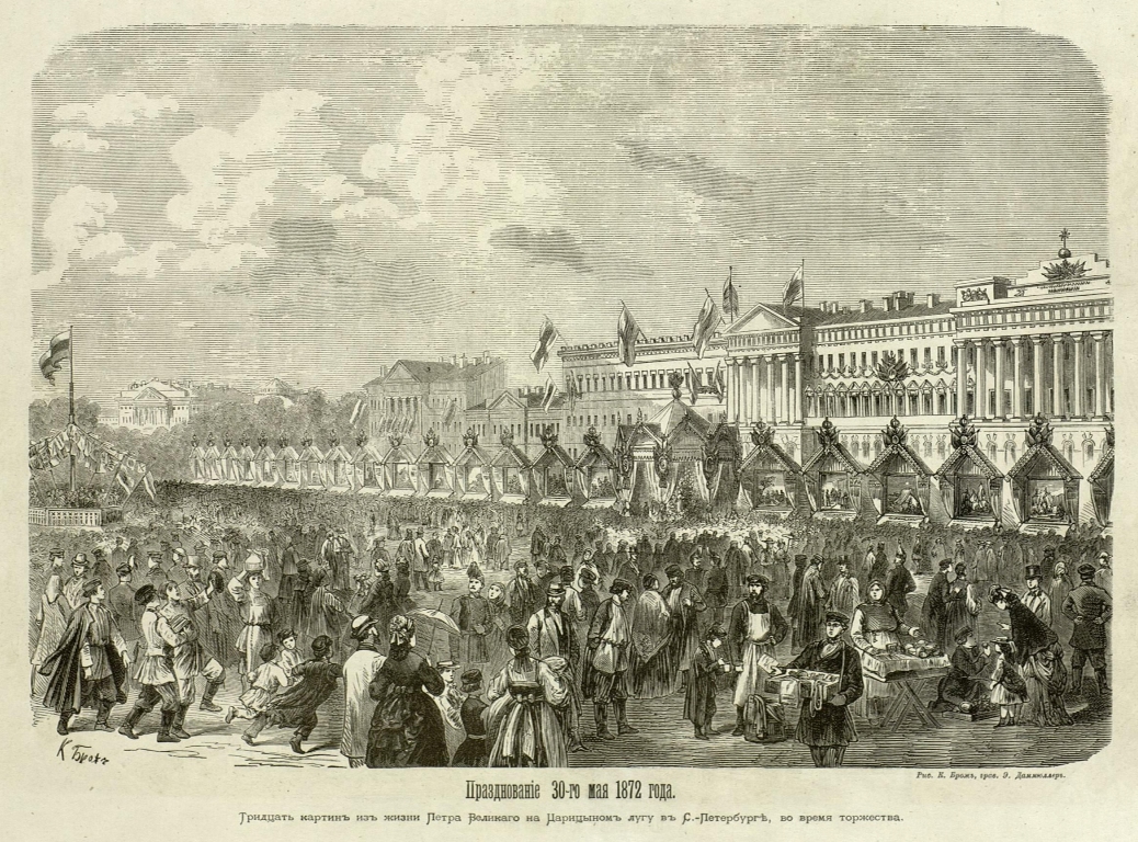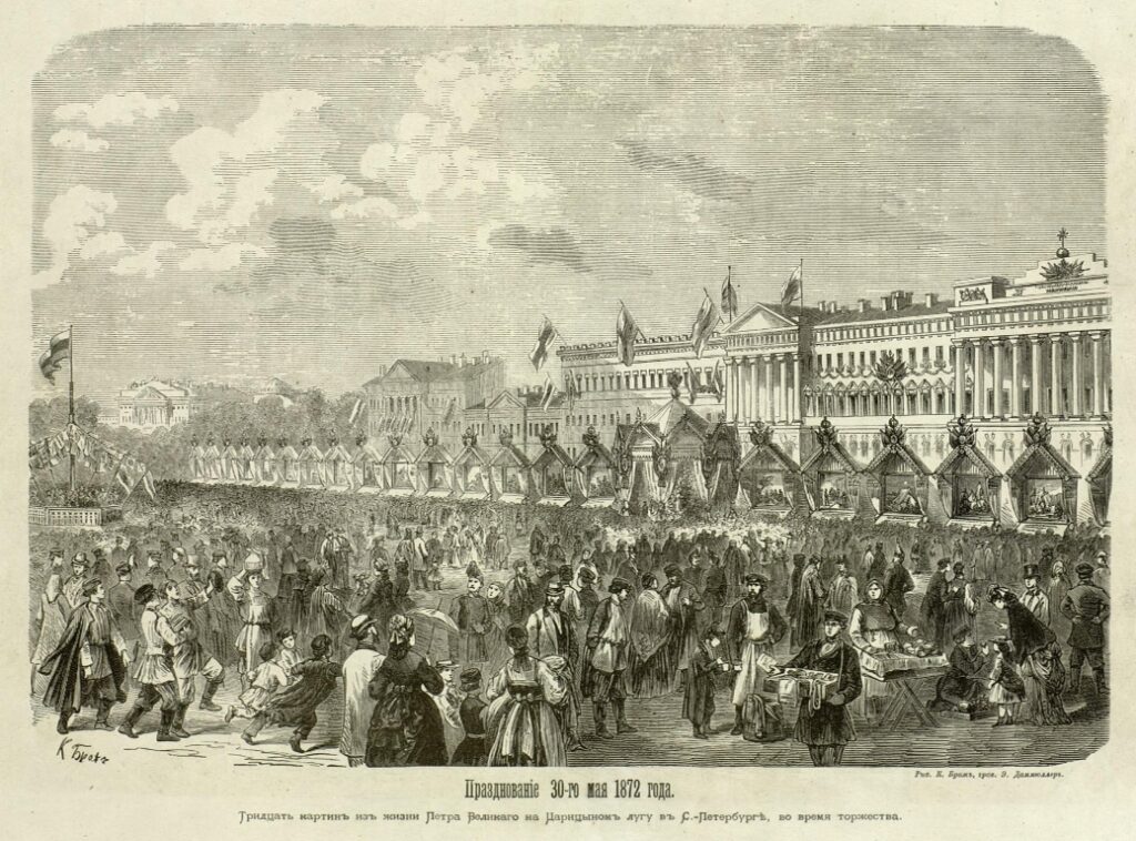 В день рождения Петра на Марсовом поле воссоздадут выставку 1872 года — тогда там отмечали 200-летие со дня рождения императора.