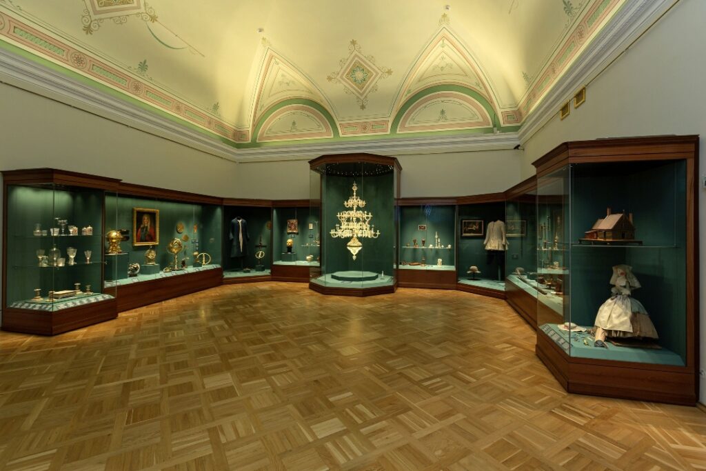 Пока открыты два первых зала. К концу 2022 года обещают представить гостям и все остальные. Сейчас посетители могут увидеть картины русских художников Петровской эпохи, а также иностранных мастеров, которые в этот период работали в России. Здесь же выставлен уникальный восковой бюст, документально точно фиксирующий облик Петра, а также предметы, сделанные самим государем, костюмы царя, трости, печать и другие личные вещи.