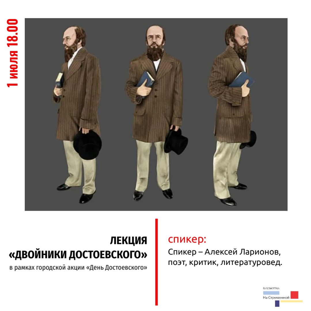 1 июля 2022 года в Санкт-Петербурге состоится лекция «Двойники Достоевского». Мероприятие пройдет библиотеке «На Стремянной» в рамках городской акции «День Достоевского». Начало в 18:00.