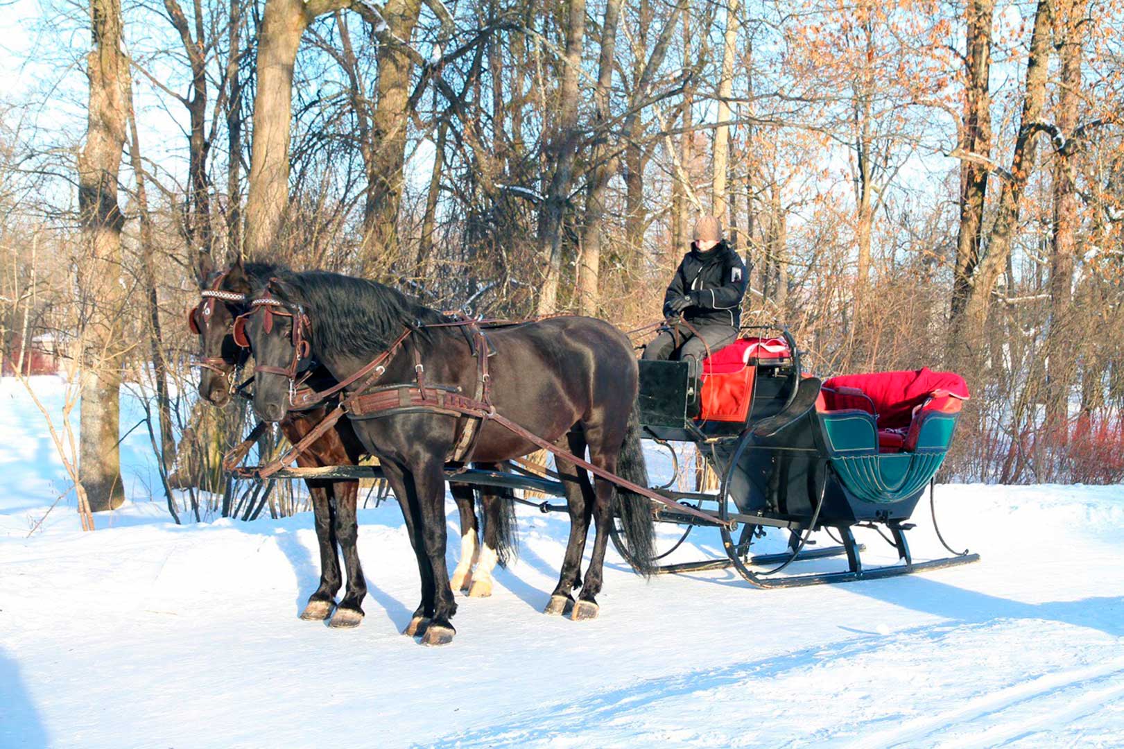 А еще в Пушкине можно покататься по Александровскому парку на санях, запряженных орловскими рысаками. По выходным и праздничным дням с 12:00 до 16:00 катание по малому кругу (до 7 минут) – 400 руб., по большому кругу (до 15 минут) – 600 руб., VIP-катание (25-30 минут) – 10 000 руб.