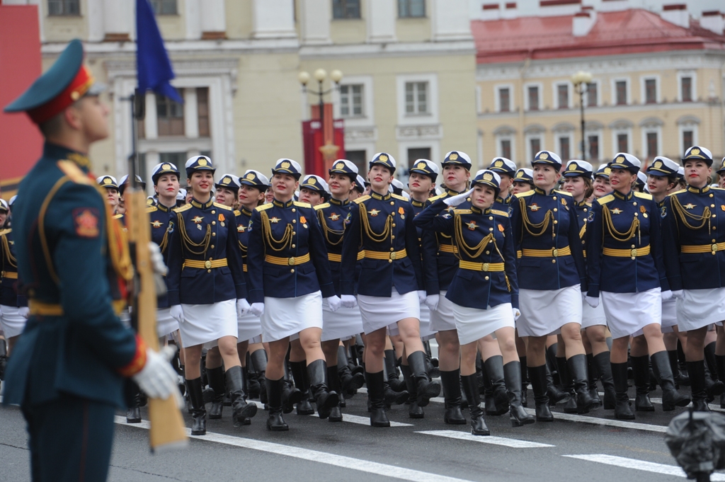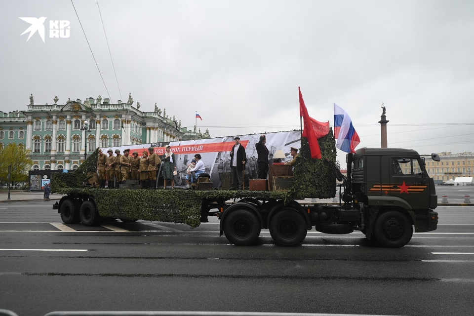 В генеральном прогоне Парада Победы на Дворцовой площади приняли участие более 5,5 тысяч военнослужащих в парадной форме, в том числе росгвардейцы и кадеты. В шествии задействовали и историческую технику. Тем временем на передвижных сценах можно было наблюдать театральные инсталляции.