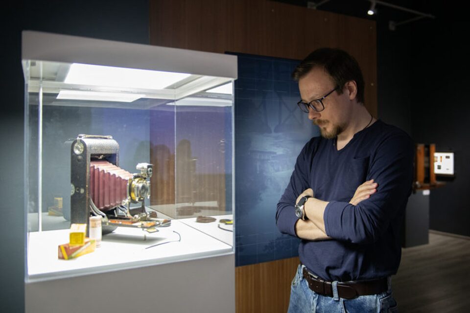Центральным элементом экспозиции является инсталляция, которая позволяет зрителям «попасть» внутрь старинного фотоаппарата и, используя современные цифровые технологии, создать собственный портрет в техниках, имитирующих дагеротипию и отпечатки на альбуминовой бумаге.