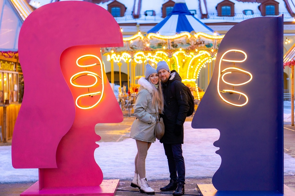 Зимние праздники в Никольских рядах продолжаются. Так, в праздничный день общественное пространство будет работать в режиме выходного дня до девяти часов вечера. С 23 по 27 февраля в Никольском дворе пройдет тематическая «Мужская неделя» с конкурсами, розыгрышами призов и специальными предложениями от кафе и ресторанов. Здесь можно прокатиться на огромной горке и Венецианской карусели. А еще недавно вместо Новогодней елки тут появился арт-объект для классных и необычных фотографий. Это два больших профиля — мужской и женский.