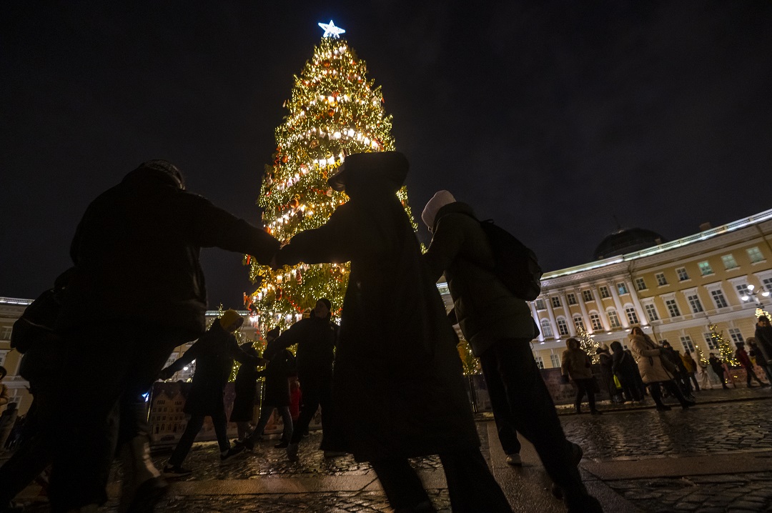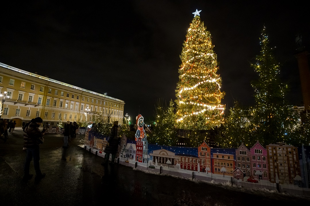 Праздничных программ на главной площади города не будет: массовые празднования и салют отменили. Но в самом сердце Петербурга возле нарядной елки можно жечь бенгальские огни, петь песни, танцевать и делать памятные фотографии.