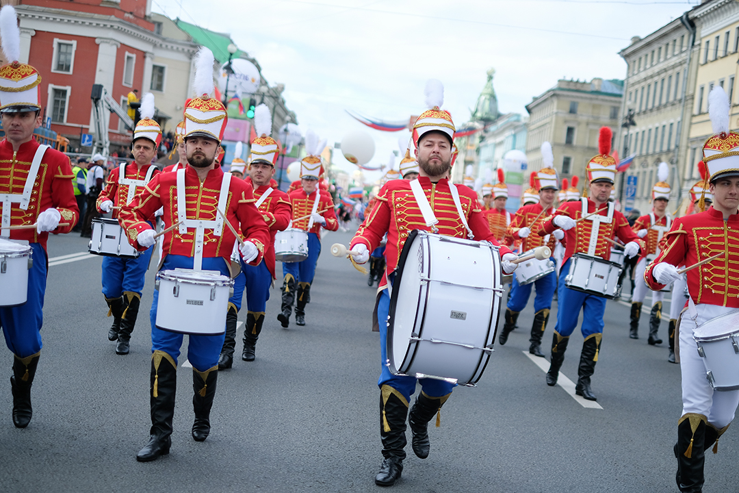На Невском проспекте в День города 27 мая традиционно проходит шоу барабанщиков. Этот парад стал одним из главных фишек праздника, которую стремятся увидеть все гости северной столицы. В 2021 году его не проводили в день рождения города, зато провели 12 июля 2021 года в День России. На праздник города в 2022 году его также не провели. Состоится ли оно в 2023 пока неизвестно.