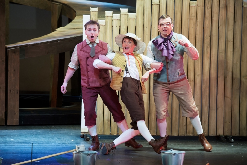Спектакль создан на основе произведения Марка Твена. Том Сойер — популярный главный герой романа. Мальчику 12 лет, он живет у родной сестры матери и постоянно становится участников забавных и нестандартных ситуаций. Том Сойер находит убийцу, убегает из дома с мечтой стать пиратом, теряется в пещере, но выбирается из нее, отыскивает сокровище и делится им со своим другом, а также встречает первую любовь…