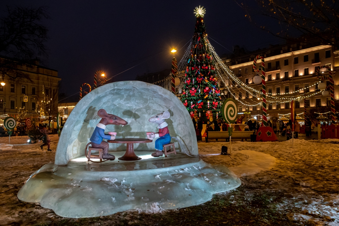 Главная тема площадки — знаменитая сказка Гофмана «Щелкунчик и Мышиный король». На Манежной площади в этом году появится двухъярусная карусель, фотозоны в виде старинных часов и многометрового торта. А на Кленовой улице установят стилизованные фуд-траки и оборудуют бесплатный каток.