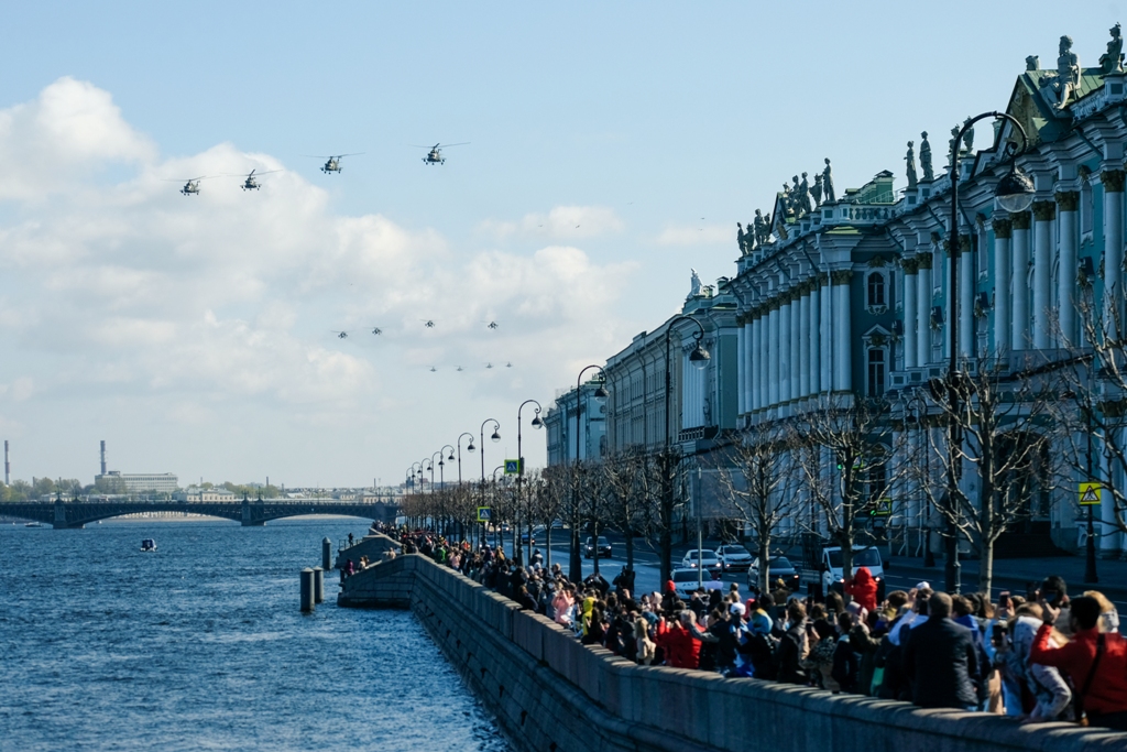 Воздушная часть Парада Победы видна из любой точки вблизи Дворцовой площади и Стрелки Васильевского острова. В вашем распоряжении все близлежащие набережные: