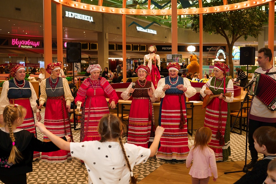 На катке гулянье проведут ведущие в образах скоморохов, вовлекая гостей в музыкальные флешмобы, а за живой звук будет отвечать дуэт «Арония». С 16:00 до 19:00 праздник продолжается на Фуд‑парке: на сцене выступит фолк‑шоу‑группа «ЛаДо», параллельно пройдут конкурсы с тематическим реквизитом (в том числе со сковородками, блинами и валенками) и общий хоровод, а подкрепиться можно бесплатными блинами. Для тех, кто хочет заняться чем-то руками, подготовили мастер‑классы по росписи деревянных свистулек и ложек, изготовлению народных кукол и «птичек» из ниток. В завершение — награждение победителей и коллективная фотография на память.