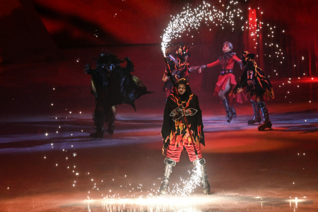 — Помимо прокатов фигуристов на ледовой арене можно будет увидеть полеты на высоте нескольких десятков метров, трюки, световое и фаер-шоу, декорации-трансформеры, разряды почти настоящей молнии, — отмечают организаторы постановки. — Специально для ледового мюзикла создали более ста оригинальных костюмов, представляющих собой образы сказочных существ.