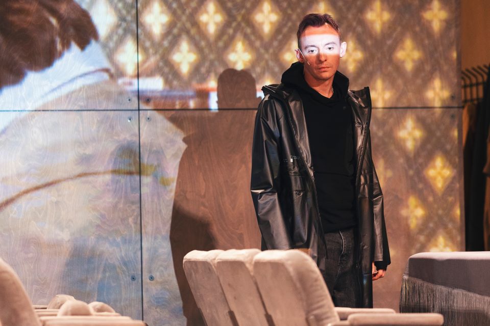 В спектакле режиссер переносит время действия в наши дни, создавая совершенно нового Достоевского при помощи театральных и киноприемов.