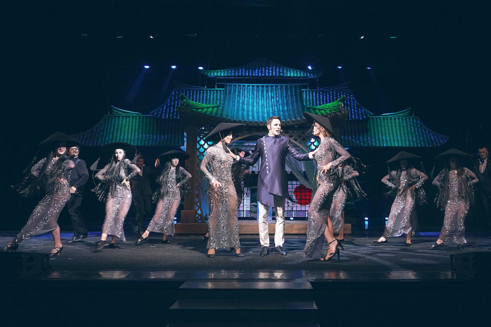 Главную женскую роль исполняют в очередь две молодые актрисы: Анастасия Макеева и Анастасия Вишневская. За спектакль их героиня меняет костюм ровно десять раз. Костюмы, украшенные вышивкой, бисером, стразами и другими элементами ручного декора, шили в Великобритании — исторические японские платья по версии высокой моды. В одной из сцен гейши выходят на сцену в шляпах-абажурах со струящимися жемчужными нитями. Каждая шляпа сделана из более чем тысячи жемчужных бусин и весит порядка 10 килограммов.
