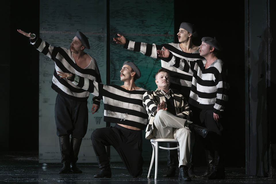 Задействованные в постановке актеры очень подвижны и неоднозначны: Серафиму Корзухину играют Наталья Ионова и Полина Воробьёва, Сергея Голубкова — Максим Заутров, Романа Хлудова — Виталий Гудков, Григория Чарноту — Евгений Тележкин.