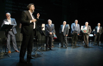 Спектакль по книге «Игра в „Городки“» — это мхатовские чтения. Артисты театра, вместе с автором произведения, читают со сцены рассказы.