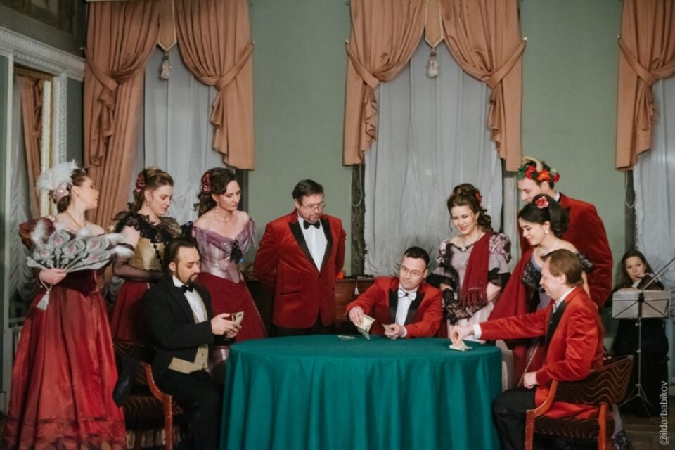 Известный театральный режиссер, заслуженный деятель искусств России и Киргизии Владислав Пази создал эту постановку с учетом уникальных интерьеров старинного особняка. Действие происходит сразу в четырех парадных залах, расположенных в анфиладе. Зрителям предстоит перемещаться по ним вместе с артистами, превращаясь в неотъемлемую часть представления.