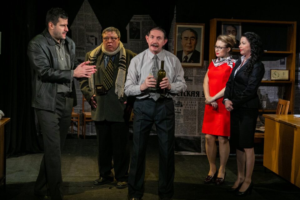 Занятыми в постановке Алексеем Исполатовым, Леонидом Зябкиным, Елизаветой Черновой, Юлией Горшениной, Андреем Вергелисом, Евгением Талашмановым, Олегом Жилиным, Оксаной Сурниной, Юлией Копыловой, Антоном Быстровым-Мокрым, Юлией Бурцевой, Виталием Ковалевым и Кристиной Комкиной живые образы создаются особой манерой игры. Досада, выраженная жестом, взгляд, уходящий в сторону от собеседника, неуверенные движения растерянного человека и, напротив, решительные жесты и походка идеологически «правильных» людей — это все мозаика подробных характерологических деталей, которая помогает создать цельные образы персонажей.