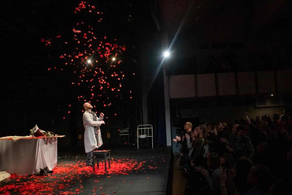 Постановку называют горькой песнью любви. В моноспектакле Евгений Стычкин, известный по многим работам, в том числе и в таких культовых отечественных картинах как «В круге первом», «Золотой телёнок», «Господа офицеры: спасти императора», «Утомлённые солнцем 2», «Белая гвардия», — муж, который повествует о своей судьбе во время бдения над телом жены. Он словно преодолевает тонкий барьер небытия, с явным напряжением вторгается в собственную жизнь, чтобы там то оправдаться перед умершей, то пасть под веским доказательством собственного малодушия, то сожалеть о несказанных словах любви.