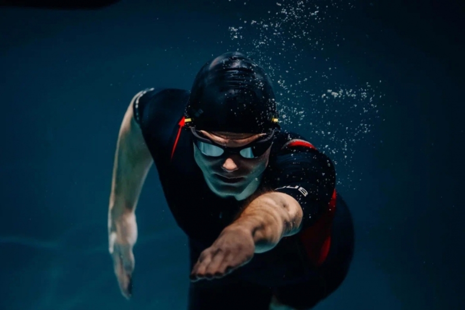 Пространство сцены организовано очень интересным образом — оно представляет собой дорожку бассейна, на которой и тренируется герой. Он заново обретает себя, снова выстраивает отношения с собственным телом, преодолевает преграды.