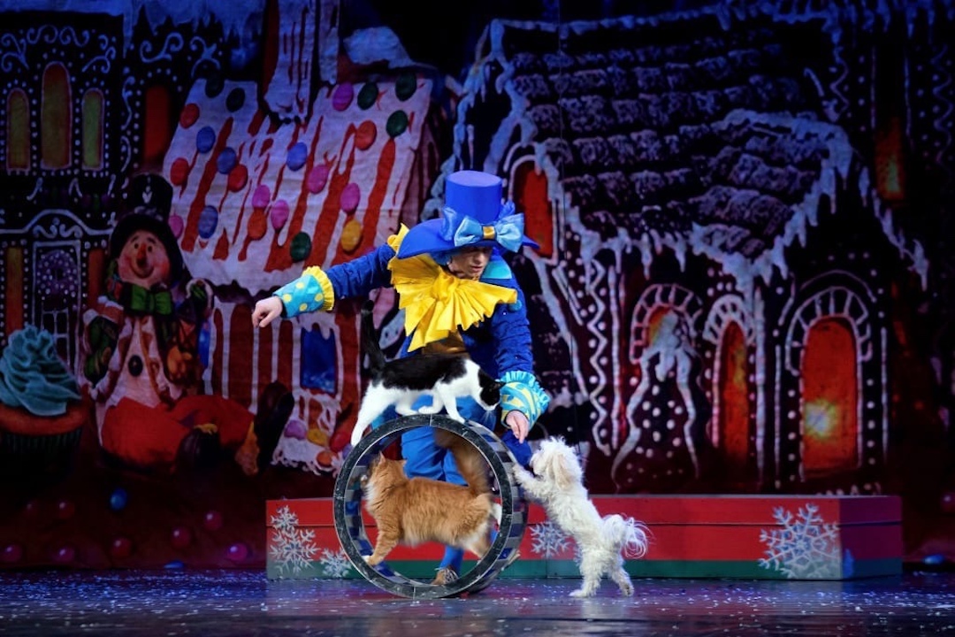 Спектакль «Щелкунчик и кошки» — это настоящая сказка. Здесь совмещены балет, цирковая клоунада и много кошечек. В истории еще не было такого сочетания трюков. С животными работали множество артистов, в том числе и клоуны из Монте-Карло.