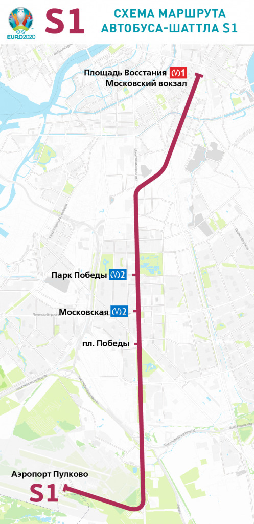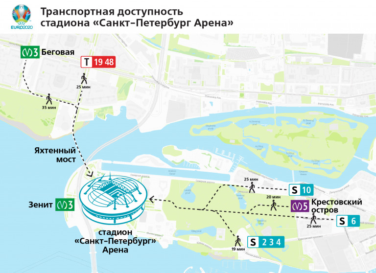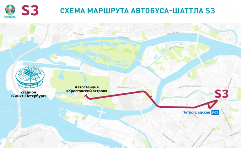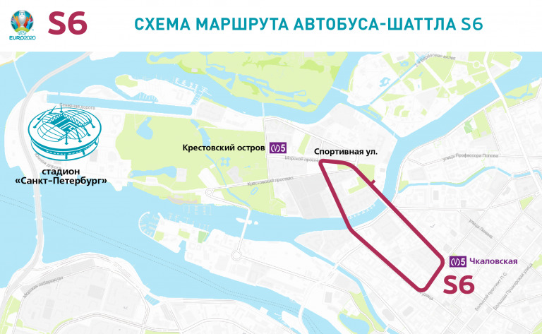 В дни матчей для болельщиков и зрителей Евро 2020 будут курсировать шаттлы по 6 маршрутам: