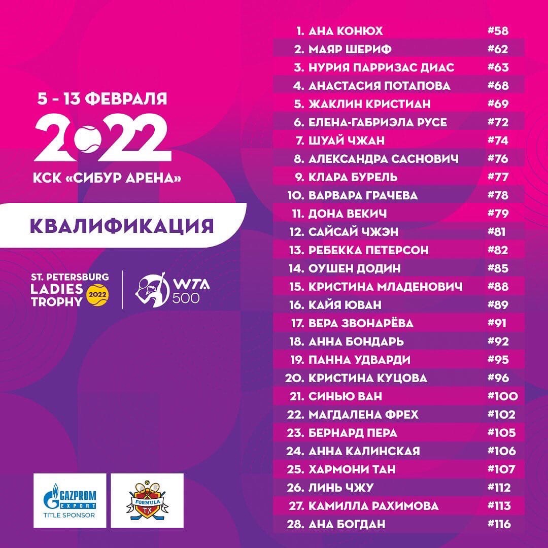 Встретились в городе на Неве и лучшие теннисистки из России – олимпийская чемпионка Анастасия Павлюченкова (одиннадцатая ракетка мира), Дарья Касаткина (двадцать шестая), Вероника Кудерметова (тридцать первая), Екатерина Александрова (тридцать четвертая) и Анастасия Потапова (шестьдесят девятая). В квалификации Петербург представили Екатерина Шалимова и Камилла Рахимова.