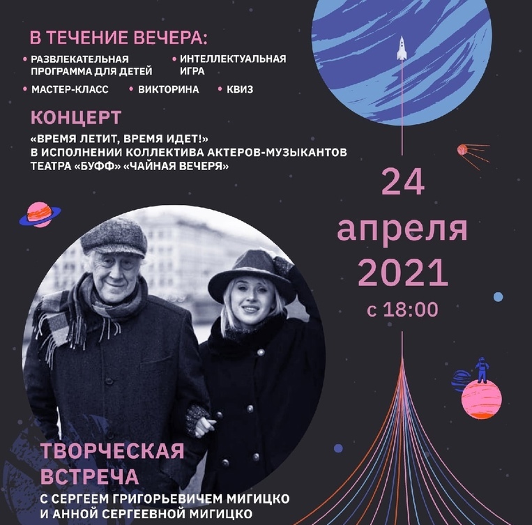 Каждая библиотека Красносельского района предложит свою культурно-просветительскую программу «Библионочи-2021». Здесь в 18.00 начнут с развлекательной программы. С 19.30 до 21.00 гостей порадуют встречей с актерами Сергеем и Анной Мигицко, а затем концертом «Время летит, время идет!» от театра «Буфф».
