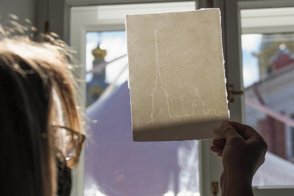 А в здании напротив для всех желающих старше 7 лет работает мастер-класс по ручному отливу бумаги. Здесь вы своими руками сделаете по исторической технологии лист бумаги с водяным знаком. Также участники мастер-класса могут изготовить уникальную открытку на старинном печатном станке.