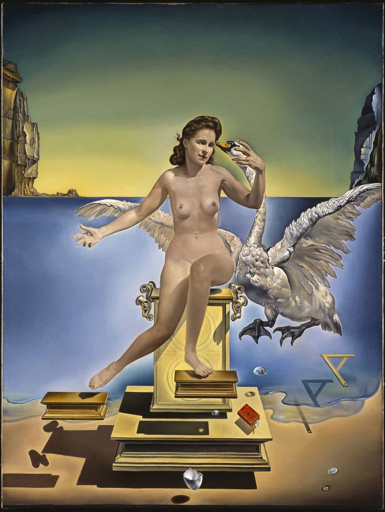 Центральное произведение выставки – «Атомная Леда» – по праву считается одним из важнейших, если не самым важным его творением. Здесь Гала изображена в виде спартанской царицы Леды, которую, согласно мифу, соблазнил Зевс, принявший облик лебедя. Для самого Дали «Атомная Леда» была этапным произведением, его первым подлинным шедевром, «идеальной картиной», построенной по правилам золотого сечения и сакральной геометрии.