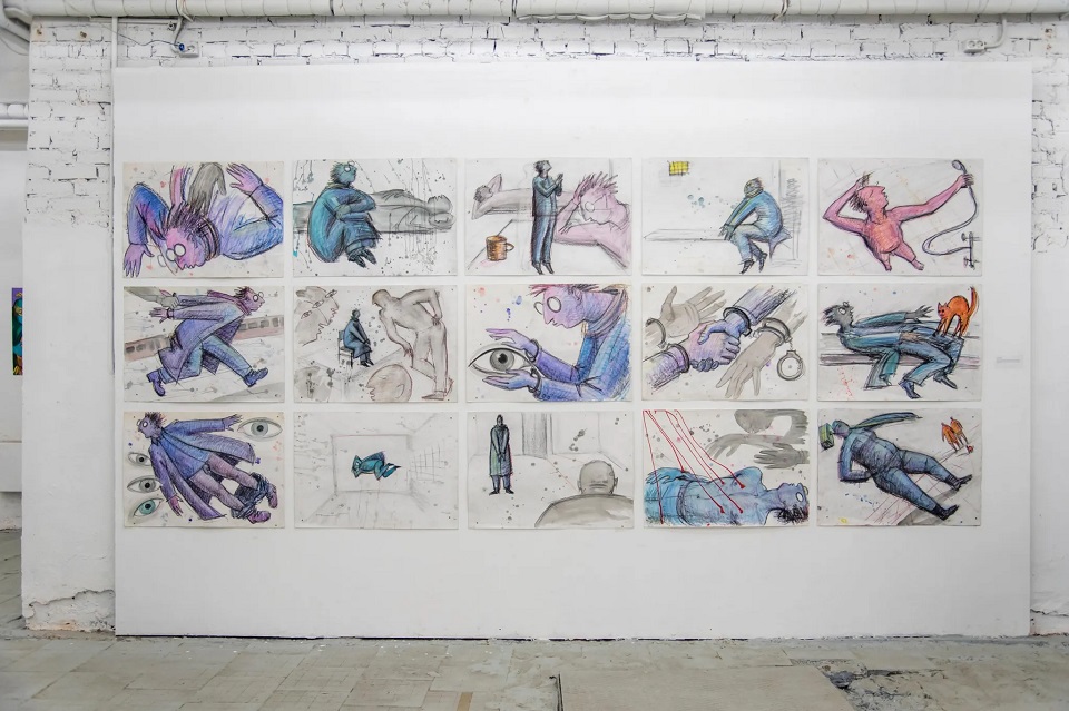 Выставка Андрея Митенева «Бог есть любовь?» посвящена тяжелому опыту двух с половиной лет тюремного заключения. На вернисаже презентуют одноименную книгу, в которую вошли документальные зарисовки тюремной жизни. Экспозиция состоит из нескольких частей. Первая «Just в Аду» посвящена непосредственно задержанию и первым впечатлениям и переживаниям в новой реальности.