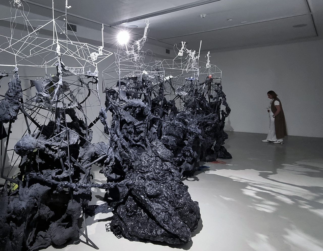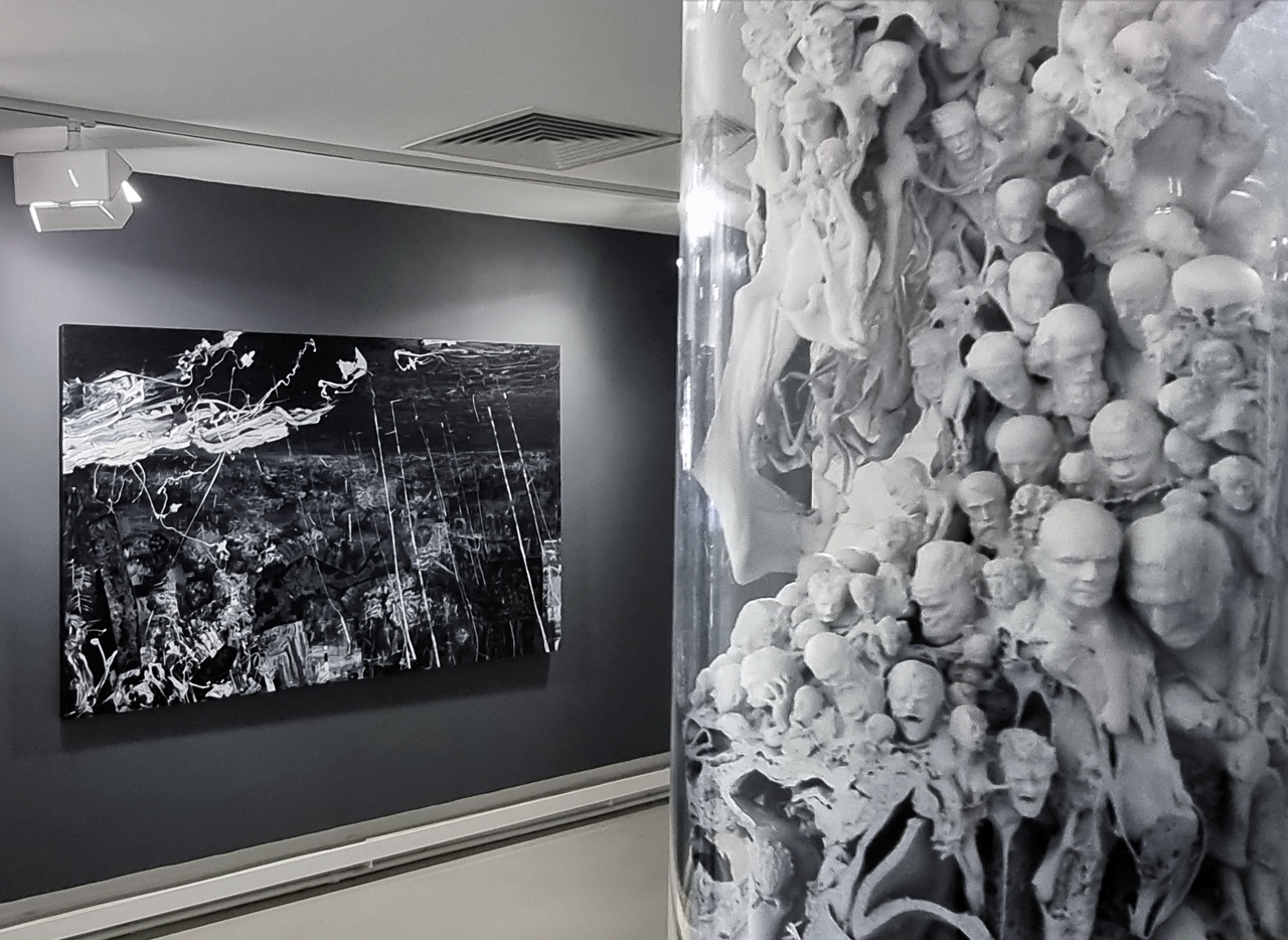Художник видоизменяет традиционное понимание картины в жанре пейзажа, создает объемные художественные объекты с зашифрованными культурными символами. Центральная работа выставки — семиметровая инсталляция «Глубинное вещество», которая одновременно изображает недры земли и показывает тщетность человеческих стремлений, в которых созидание и разрушение постоянно сменяются.